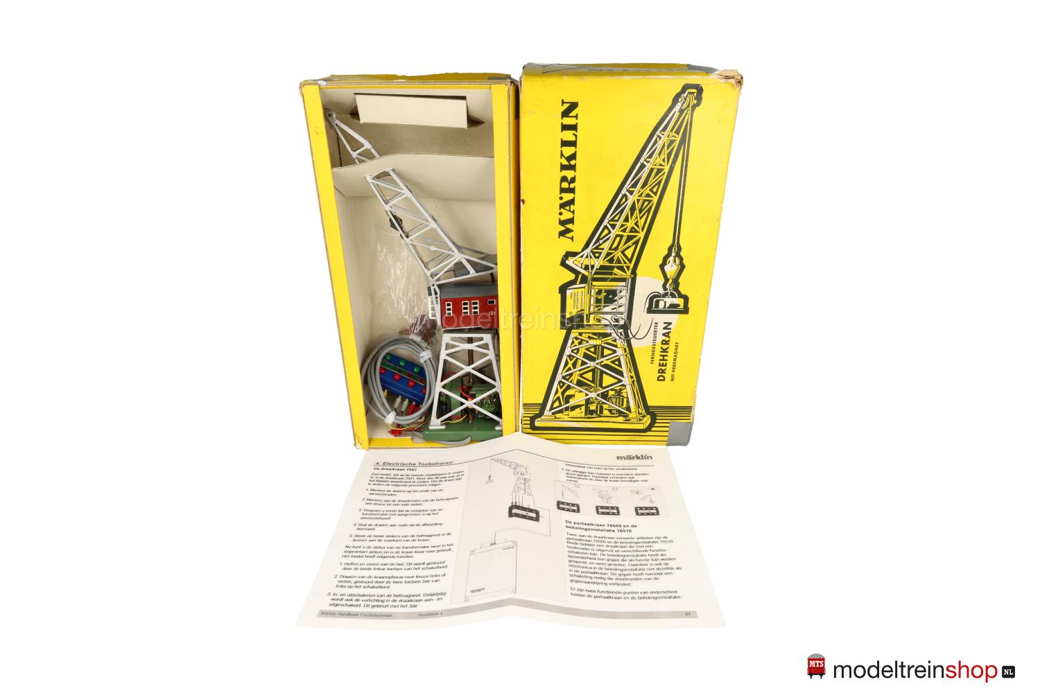 Sokkel en opbouw van metaal. 2 motoren om de giek te draaien en om de last te tillen en te vieren. Elektromagneet om ijzeren delen te verladen. Kraanhuis met verlichting. Speciale seinplaat en aansluitdraden voor de afstandsregeling. Giek verstelbaar. Hoogte 240 tot 310 mm. Draaibereik tot 360 mm doorsnee. Grondvlak 90 x 90 mm.