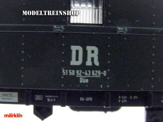 Schwarzes Kunststoff-Untergestell, Görlitzer Drehgestelle (Typ 11-b), weiße Rahmenbeschriftung. Kunststoff-Aufbau: grüner Wagenkasten, dunkelgraues Dach, weiße DR-Embleme, weiße Aufschriften, Wagen-Nr.: 50 80 92-43 629-0, Schiebebilder-Satz (Nr.30924) beigelegt, eingesetzte Fenster mit goldfarbenen Rahmen, lange Faltenbalgübergänge (ein kurzer Faltenbalg beigelegt).