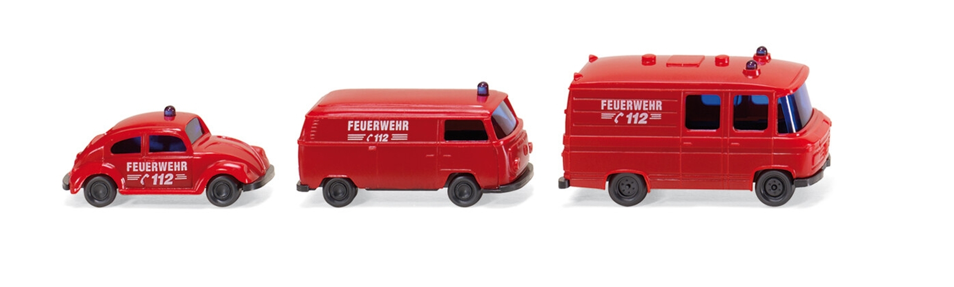 Wiking N 093449 3 delige set voertuigen "Feuerwehr" - brandweer - Modeltreinshop Wiking N 093449 3 delige set v...