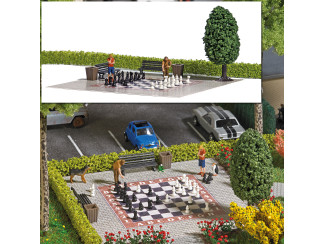 Busch H0 7976 man en kind vogelkastjes aan het oph...